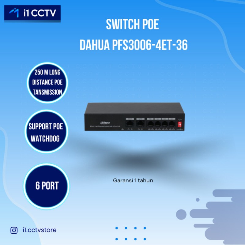 SWITCH POE DAHUA 4+2 PORT PFS3006-4ET-36 (36 WATT)